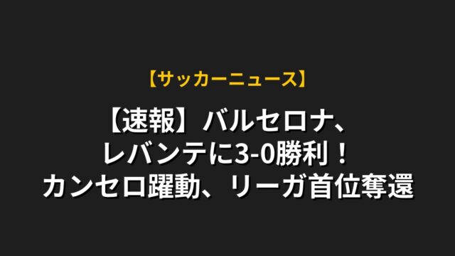 【速報】バルセロナ、レバンテに3-0勝利!カンセロ躍動、リーガ首位奪還