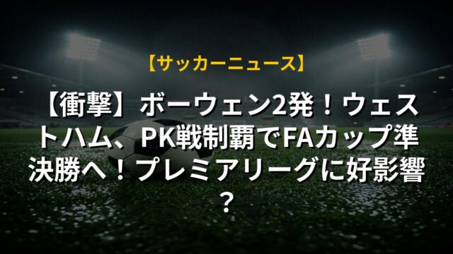 【衝撃】ボーウェン2発!ウェストハム、PK戦制覇でFAカップ準決勝へ!プレミアリーグに好影響?