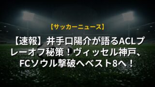 【速報】井手口陽介が語るACLプレーオフ秘策!ヴィッセル神戸、FCソウル撃破へベスト8へ!