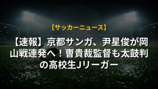 【速報】京都サンガ、尹星俊が岡山戦連発へ!曺貴裁監督も太鼓判の高校生Jリーガー