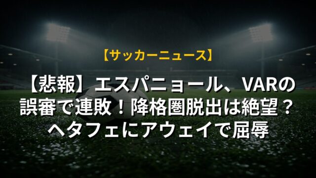 【悲報】エスパニョール、VARの誤審で連敗!降格圏脱出は絶望?ヘタフェにアウェイで屈辱