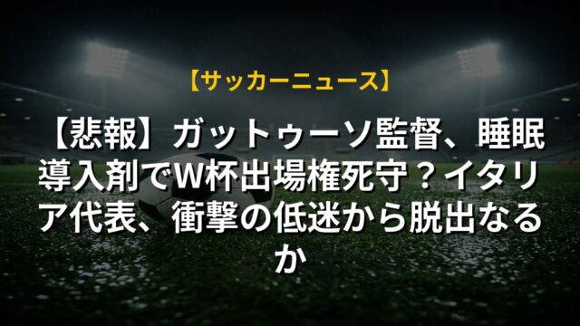 【悲報】ガットゥーソ監督、睡眠導入剤でW杯出場権死守?イタリア代表、衝撃の低迷から脱出なるか