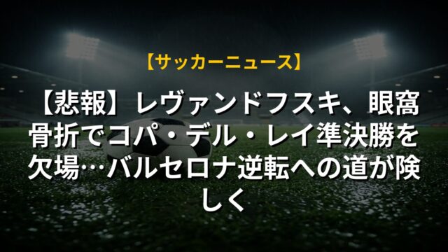 【悲報】レヴァンドフスキ、眼窩骨折でコパ・デル・レイ準決勝を欠場…バルセロナ逆転への道が険しく