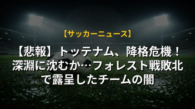【悲報】トッテナム、降格危機!深淵に沈むか…フォレスト戦敗北で露呈したチームの闇