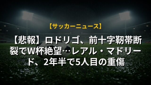 【悲報】ロドリゴ、前十字靭帯断裂でW杯絶望…レアル・マドリード、2年半で5人目の重傷