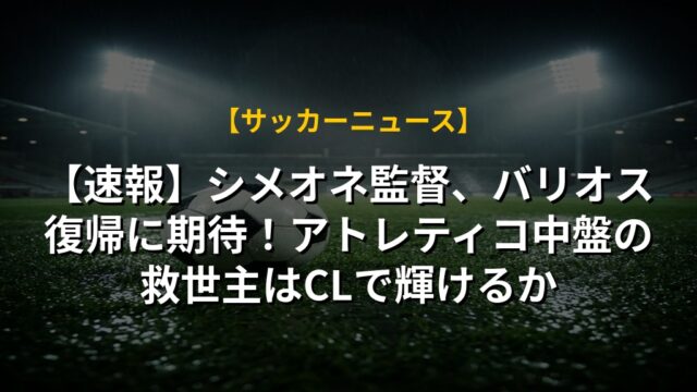 【速報】シメオネ監督、バリオス復帰に期待!アトレティコ中盤の救世主はCLで輝けるか