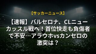 【速報】バルセロナ、CLニューカッスル戦へ!首位快走も負傷者で不安…アラウホvsカンセロの激突は?