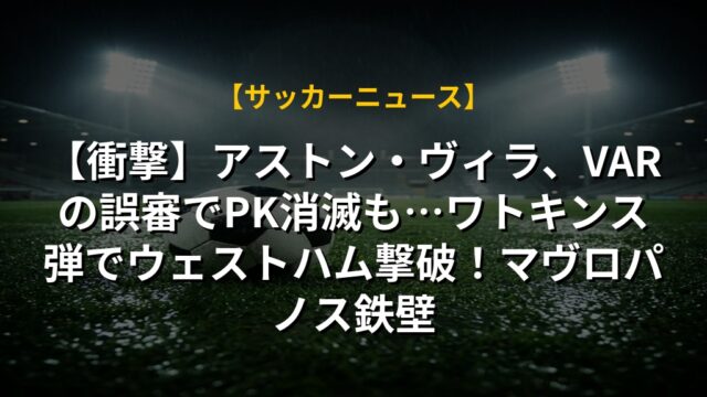 【衝撃】アストン・ヴィラ、VARの誤審でPK消滅も…ワトキンス弾でウェストハム撃破!マヴロパノス鉄壁