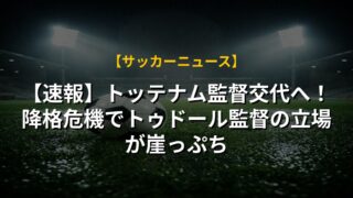 【速報】トッテナム監督交代へ!降格危機でトゥドール監督の立場が崖っぷち