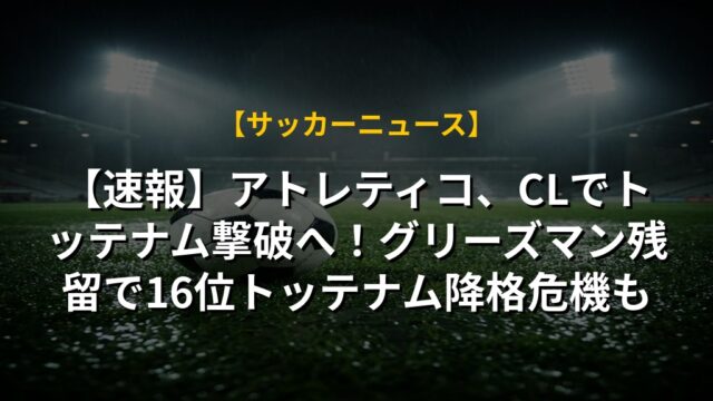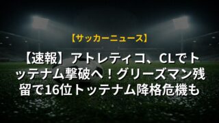 【速報】アトレティコ、CLでトッテナム撃破へ!グリーズマン残留で16位トッテナム降格危機も