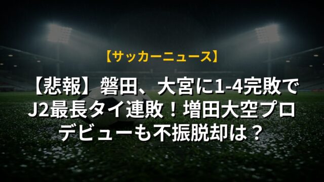 【悲報】磐田、大宮に1-4完敗でJ2最長タイ連敗!増田大空プロデビューも不振脱却は?
