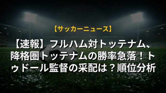 【速報】フルハム対トッテナム、降格圏トッテナムの勝率急落!トゥドール監督の采配は?順位分析