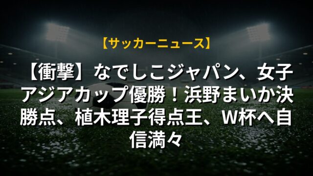 【衝撃】なでしこジャパン、女子アジアカップ優勝!浜野まいか決勝点、植木理子得点王、W杯へ自信満々