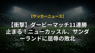 【衝撃】ダービーマッチ11連勝止まる!ニューカッスル、サンダーランドに屈辱の敗北