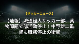 【速報】流通経大サッカー部、薬物問題で部活動停止!中野雄二監督も職務停止の衝撃