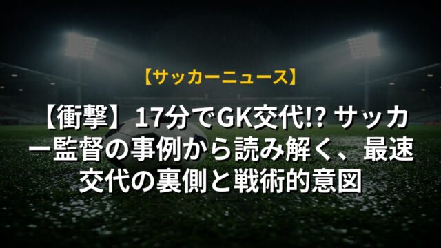 【衝撃】17分でGK交代!? サッカー監督の事例から読み解く、最速交代の裏側と戦術的意図