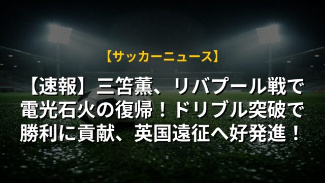 【速報】三笘薫、リバプール戦で電光石火の復帰!ドリブル突破で勝利に貢献、英国遠征へ好発進!