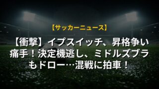 【衝撃】イプスイッチ、昇格争い痛手!決定機逃し、ミドルズブラもドロー…混戦に拍車!
