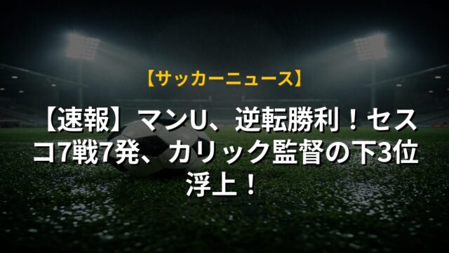 【速報】マンU、逆転勝利!セスコ7戦7発、カリック監督の下3位浮上!