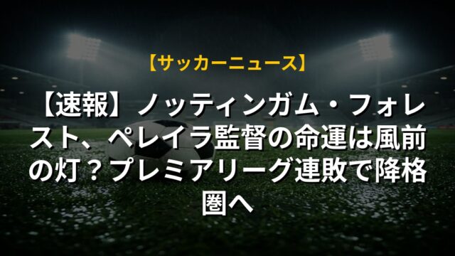 【速報】ノッティンガム・フォレスト、ペレイラ監督の命運は風前の灯?プレミアリーグ連敗で降格圏へ