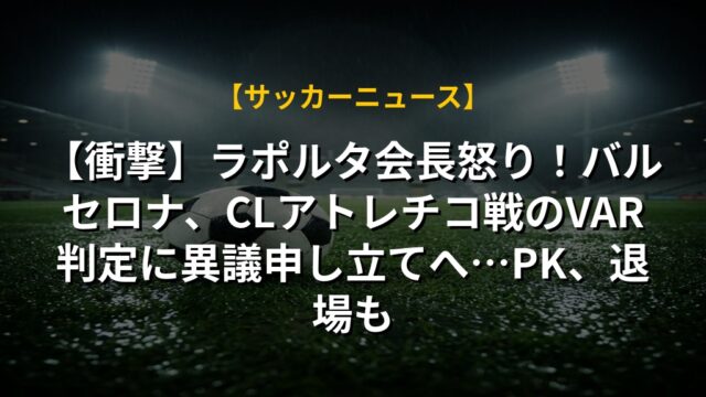 【衝撃】ラポルタ会長怒り!バルセロナ、CLアトレチコ戦のVAR判定に異議申し立てへ…PK、退場も