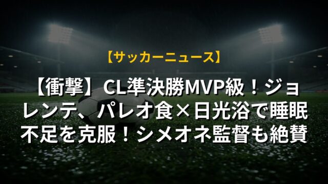 【衝撃】CL準決勝MVP級!ジョレンテ、パレオ食×日光浴で睡眠不足を克服!シメオネ監督も絶賛
