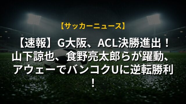 【速報】G大阪、ACL決勝進出!山下諒也、食野亮太郎らが躍動、アウェーでバンコクUに逆転勝利!