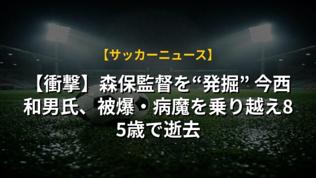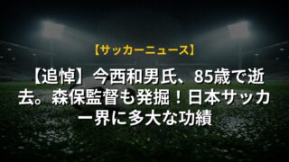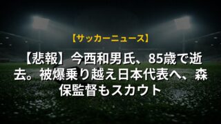 【悲報】今西和男氏、85歳で逝去。被爆乗り越え日本代表へ、森保監督もスカウト