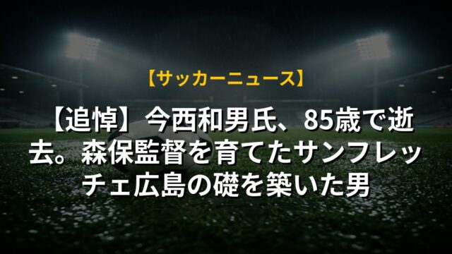 【追悼】今西和男氏、85歳で逝去。森保監督を育てたサンフレッチェ広島の礎を築いた男