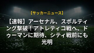 【速報】アーセナル、スポルティング撃破!アトレティコ戦へ、ドゥーマンに期待、シティ戦前にも光明