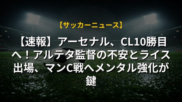 【速報】アーセナル、CL10勝目へ!アルテタ監督の不安とライス出場、マンC戦へメンタル強化が鍵