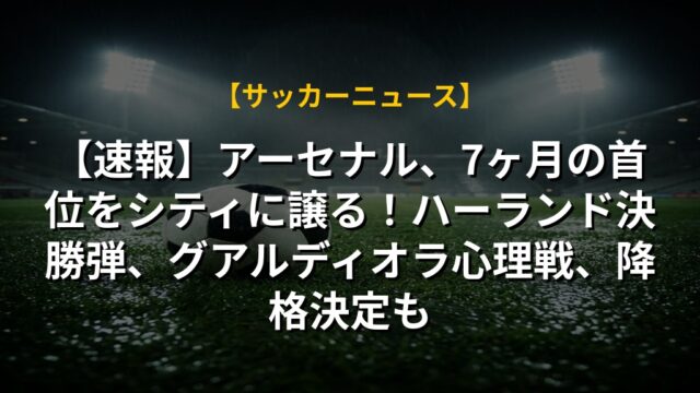 【速報】アーセナル、7ヶ月の首位をシティに譲る!ハーランド決勝弾、グアルディオラ心理戦、降格決定も
