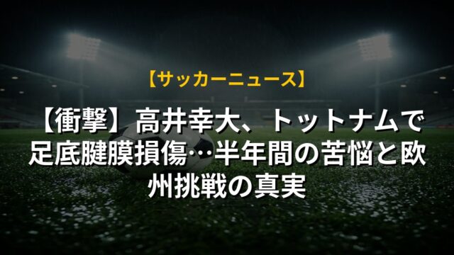【衝撃】高井幸大、トットナムで足底腱膜損傷…半年間の苦悩と欧州挑戦の真実