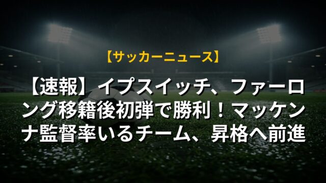 【速報】イプスイッチ、ファーロング移籍後初弾で勝利!マッケンナ監督率いるチーム、昇格へ前進