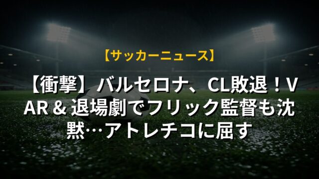 【衝撃】バルセロナ、CL敗退!VAR & 退場劇でフリック監督も沈黙…アトレチコに屈す