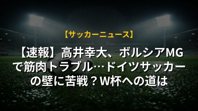 【速報】高井幸大、ボルシアMGで筋肉トラブル…ドイツサッカーの壁に苦戦?W杯への道は