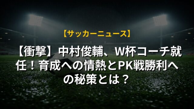 【衝撃】中村俊輔、W杯コーチ就任!育成への情熱とPK戦勝利への秘策とは?