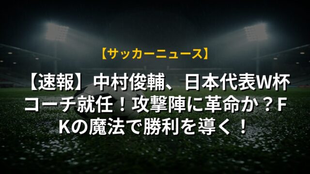 【速報】中村俊輔、日本代表W杯コーチ就任!攻撃陣に革命か?FKの魔法で勝利を導く!