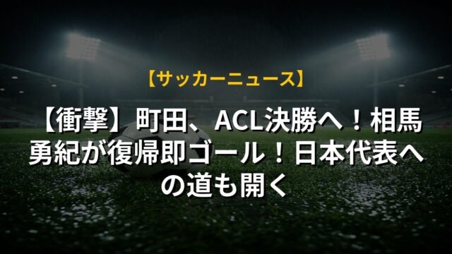 【衝撃】町田、ACL決勝へ!相馬勇紀が復帰即ゴール!日本代表への道も開く