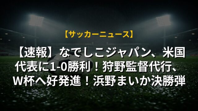 【速報】なでしこジャパン、米国代表に1-0勝利!狩野監督代行、W杯へ好発進!浜野まいか決勝弾