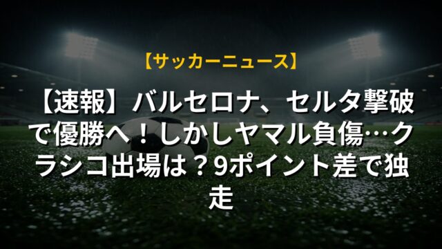 【速報】バルセロナ、セルタ撃破で優勝へ!しかしヤマル負傷…クラシコ出場は?9ポイント差で独走