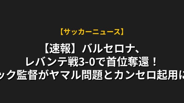 【速報】バルセロナ、レバンテ戦3-0で首位奪還!フリック監督がヤマル問題とカンセロ起用に言及