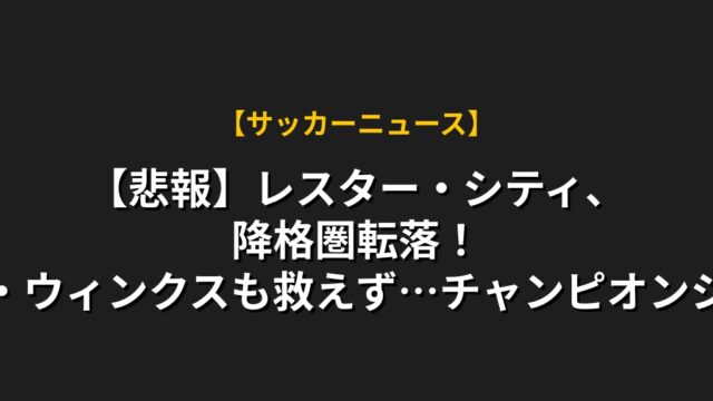 【悲報】レスター・シティ、降格圏転落!ハリー・ウィンクスも救えず…チャンピオンシップへ