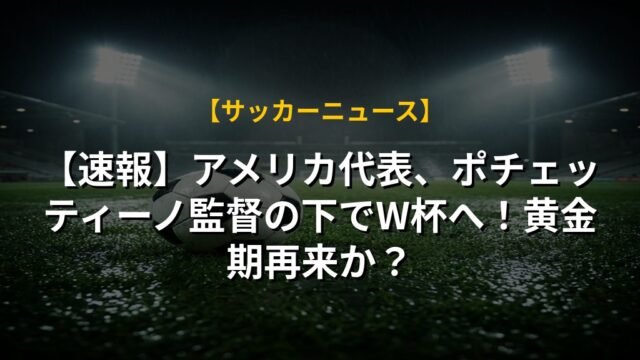【速報】アメリカ代表、ポチェッティーノ監督の下でW杯へ!黄金期再来か?