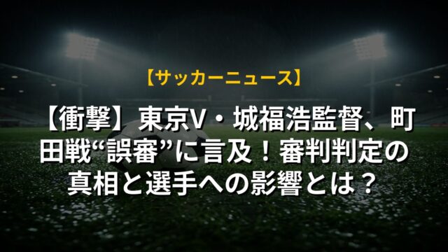 【衝撃】東京V・城福浩監督、町田戦“誤審”に言及!審判判定の真相と選手への影響とは?