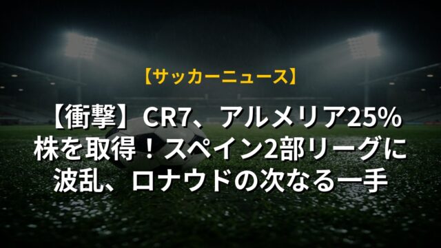 【衝撃】CR7、アルメリア25%株を取得!スペイン2部リーグに波乱、ロナウドの次なる一手