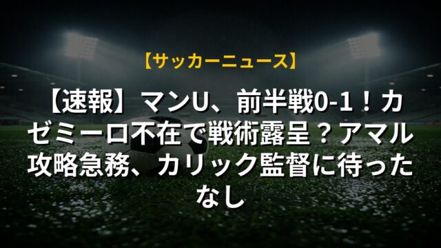 【速報】マンU、前半戦0-1!カゼミーロ不在で戦術露呈?アマル攻略急務、カリック監督に待ったなし