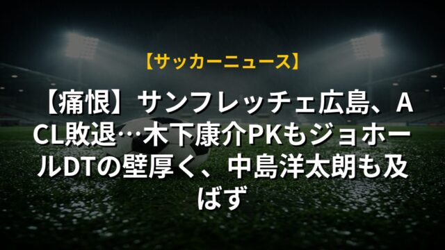 【痛恨】サンフレッチェ広島、ACL敗退…木下康介PKもジョホールDTの壁厚く、中島洋太朗も及ばず
