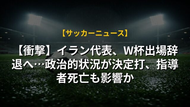 【衝撃】イラン代表、W杯出場辞退へ…政治的状況が決定打、指導者死亡も影響か