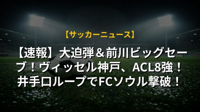 【速報】大迫弾&前川ビッグセーブ!ヴィッセル神戸、ACL8強!井手口ループでFCソウル撃破!